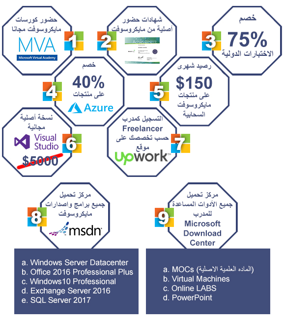11. الدخول المجانى على مايكروسوفت Microsoft Labs Online (MLO)، بقيمه 5 الاف دولار امريكى و ذلك لدعم استعداد المدرب.